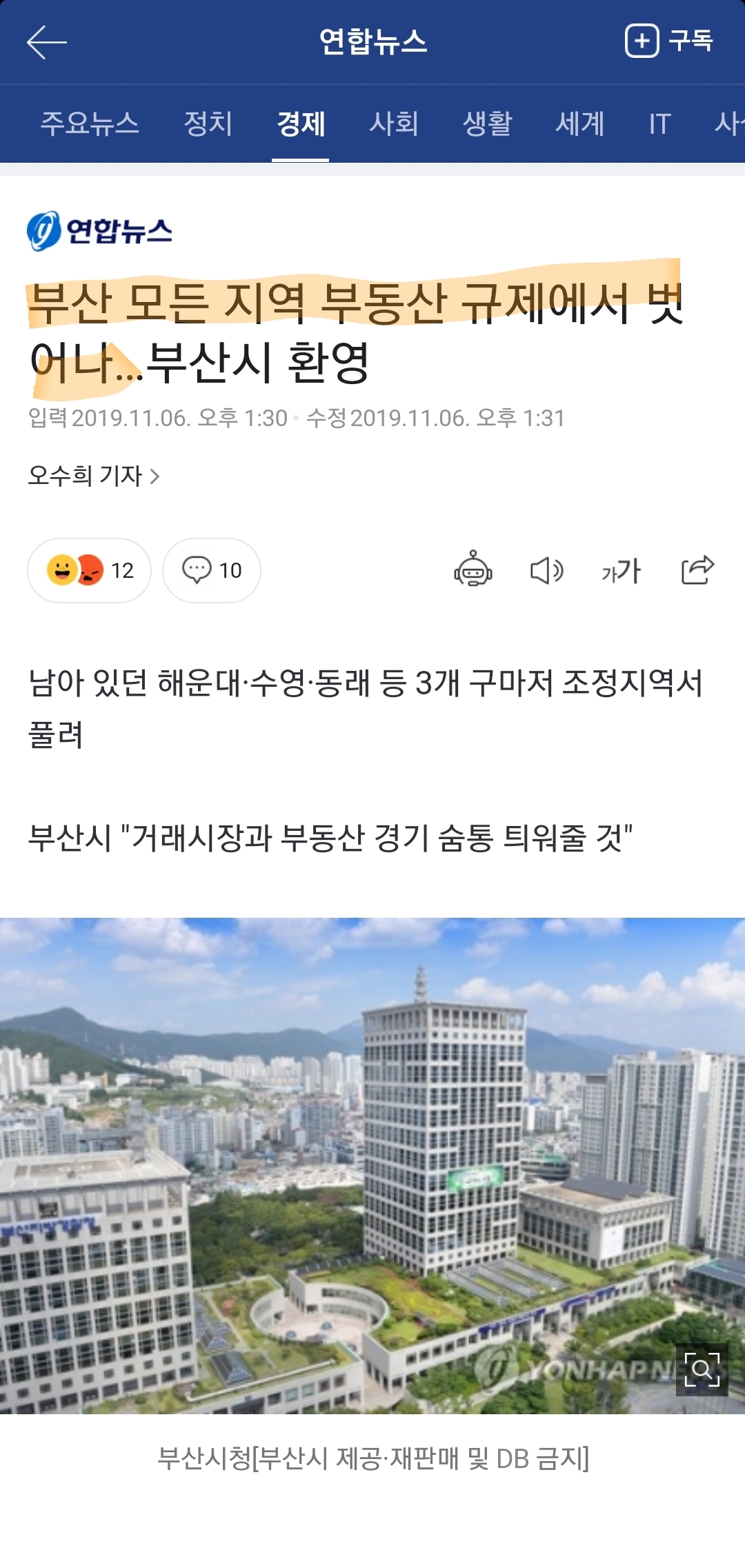 부산 모든 지역 부동산 규제에서 벗어나…부산시 환영