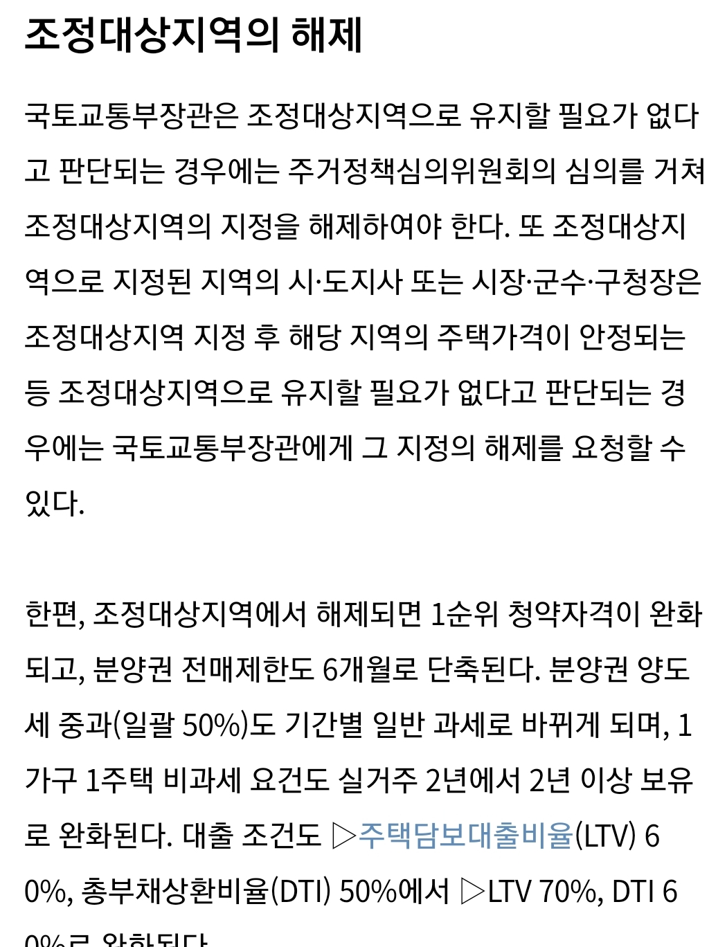 미분양은 조정지역 해제 이유가 된다
